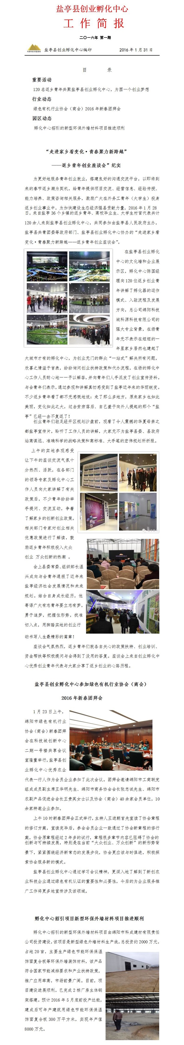鹽亭縣創業孵化中心二零一六年一月工作簡報