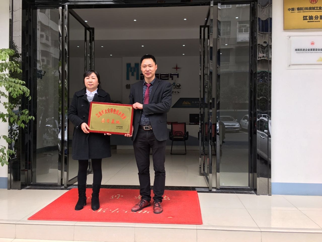 圖為韓銀華主席授“江油市女大學(xué)生回鄉(xiāng)創(chuàng)業(yè)實(shí)習(xí)基地”牌