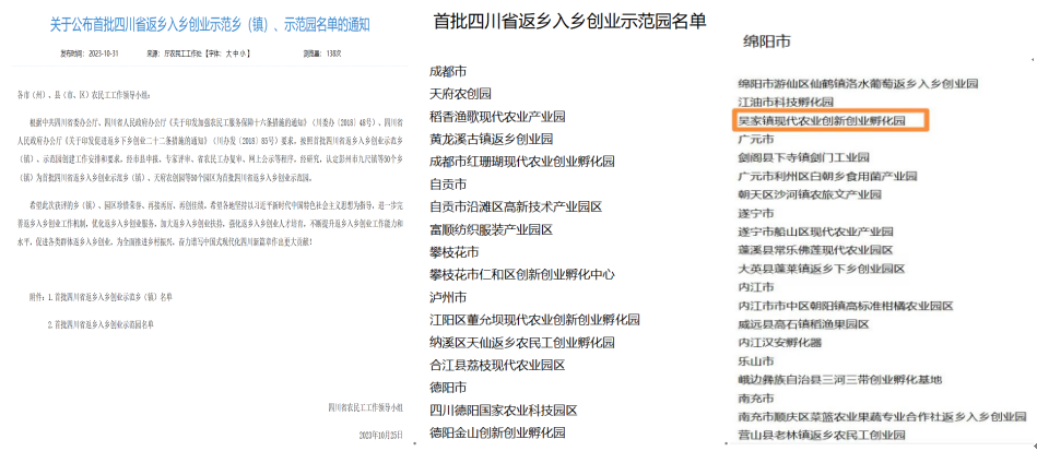 2023年10月31日,四川省人社廳農(nóng)民工工作處公布首批四川省返鄉(xiāng)入鄉(xiāng)創(chuàng)業(yè)示范鄉(xiāng)(鎮(zhèn))、示范園名單,科源集團(tuán)運(yùn)營(yíng)的“吳家鎮(zhèn)現(xiàn)代農(nóng)業(yè)創(chuàng)新創(chuàng)業(yè)孵化園”喜獲殊榮!